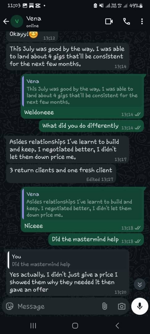 Yes, if you commit. The strategies you’ll learn are the same ones I’ve personally used to go from ₦17,000 gigs to $1,000+ projects. My students have gone from struggling locally to consistently landing international clients. If you put in the work, it will work.