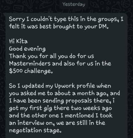 I've taught others to do the same. My students have gone from struggling to make their first dollar online to consistently landing high-paying international clients.